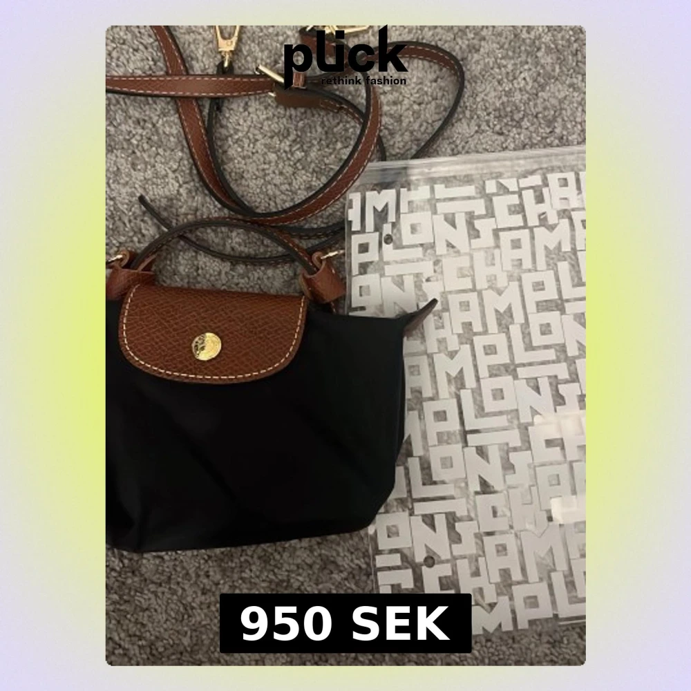 Säljer en svart axelväska från Longchamp med bruna skinn-detaljer och guldfärgad knapp. Väskan har justerbar axelrem och klassisk design med lock och dragkedja. Perfekt storlek för det viktigaste och enkel att matcha till olika outfits. Köpt på NK i höstas o ansvänd endast en gång!