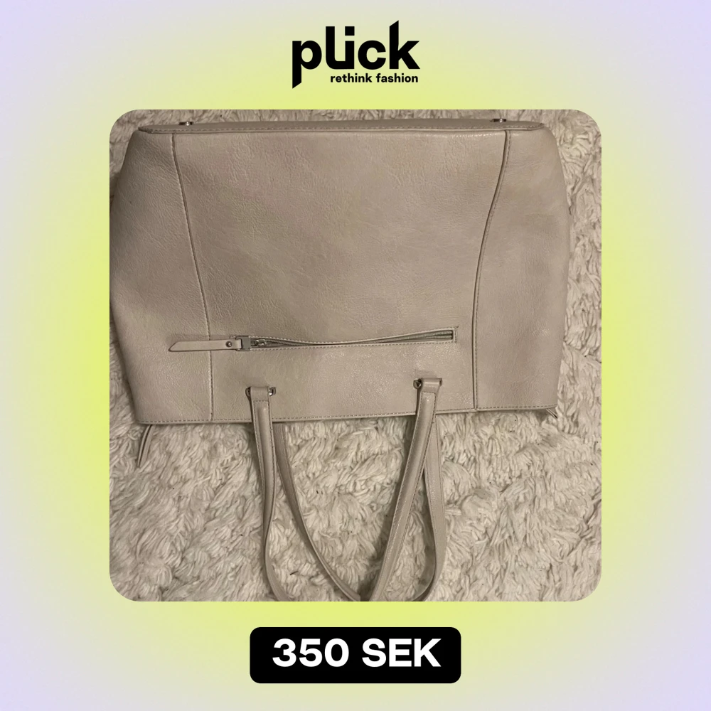 Säljer en stilren beige axelväska i syntetmaterial. Väskan har en praktisk dragkedja på framsidan och långa handtag som gör den lätt att bära över axeln. Nypris 800kr.
