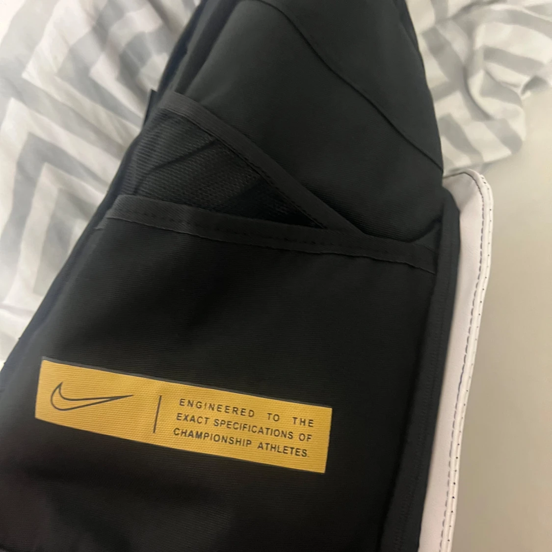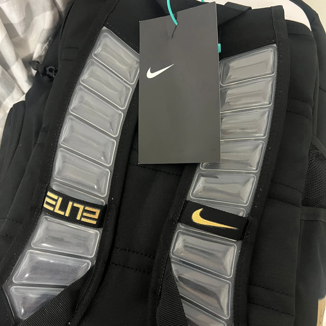 Nike Elite ryggsäck i svart med vita och guldfärgade detaljer. Snyggt broderad Swoosh-logga och ELITE-tryck i guld. Axelremmarna har vadderade paneler och extra komfort. Praktiska fack och dragkedjor, perfekt för träning eller skola.
