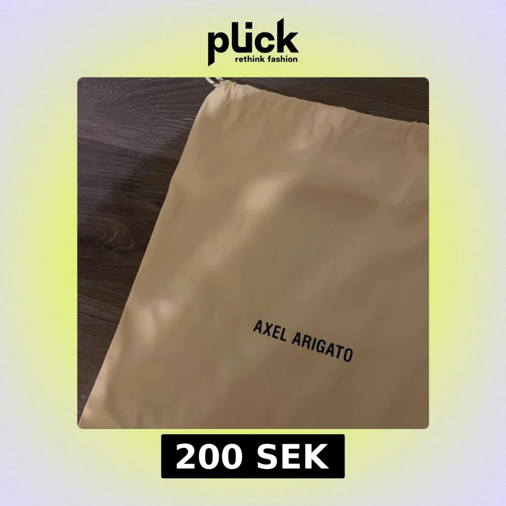 Snygg beige ryggsäck från Axel Arigato med svart logga framtill. Väskan har praktisk snörning upptill och är tillverkad i ett mjukt syntetmaterial. Perfekt för dig som gillar minimalistisk stil och vill ha något enkelt att bära med dig tex träningskläder