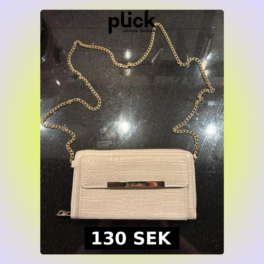 Jag säljer en beige axelväska/crossbody väska med guldiga detaljer från märket AMISU i mycket gott skick!
