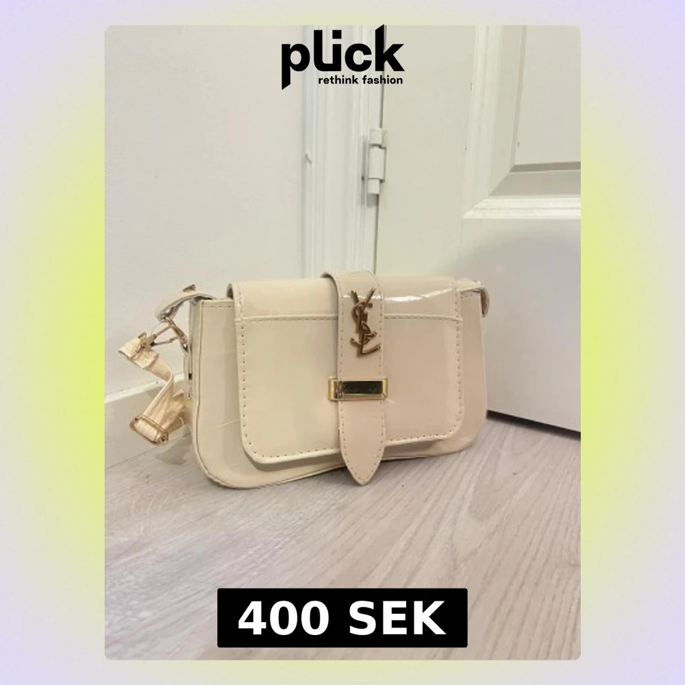 Snygg beige axelväska. Väskan har en stilren rektangulär form, justerbar axelrem och ikonisk logga. Perfekt för dig som gillar lyxiga accessoarer med clean look.