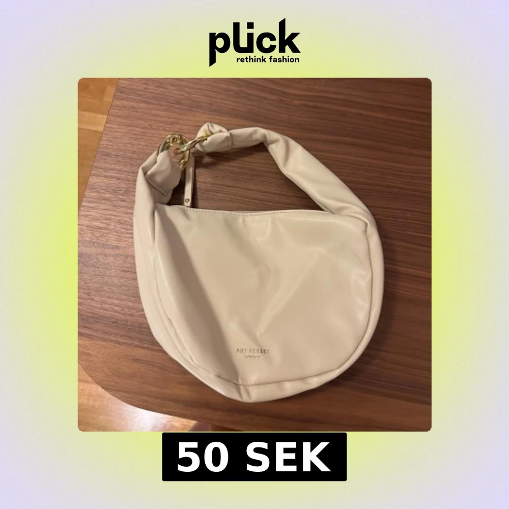 Säljer en stilren beige axelväska från Art Street. Väskan har en knuten axelrem och en dragkedja. Aldrig använd så inga skador. Från Ullared