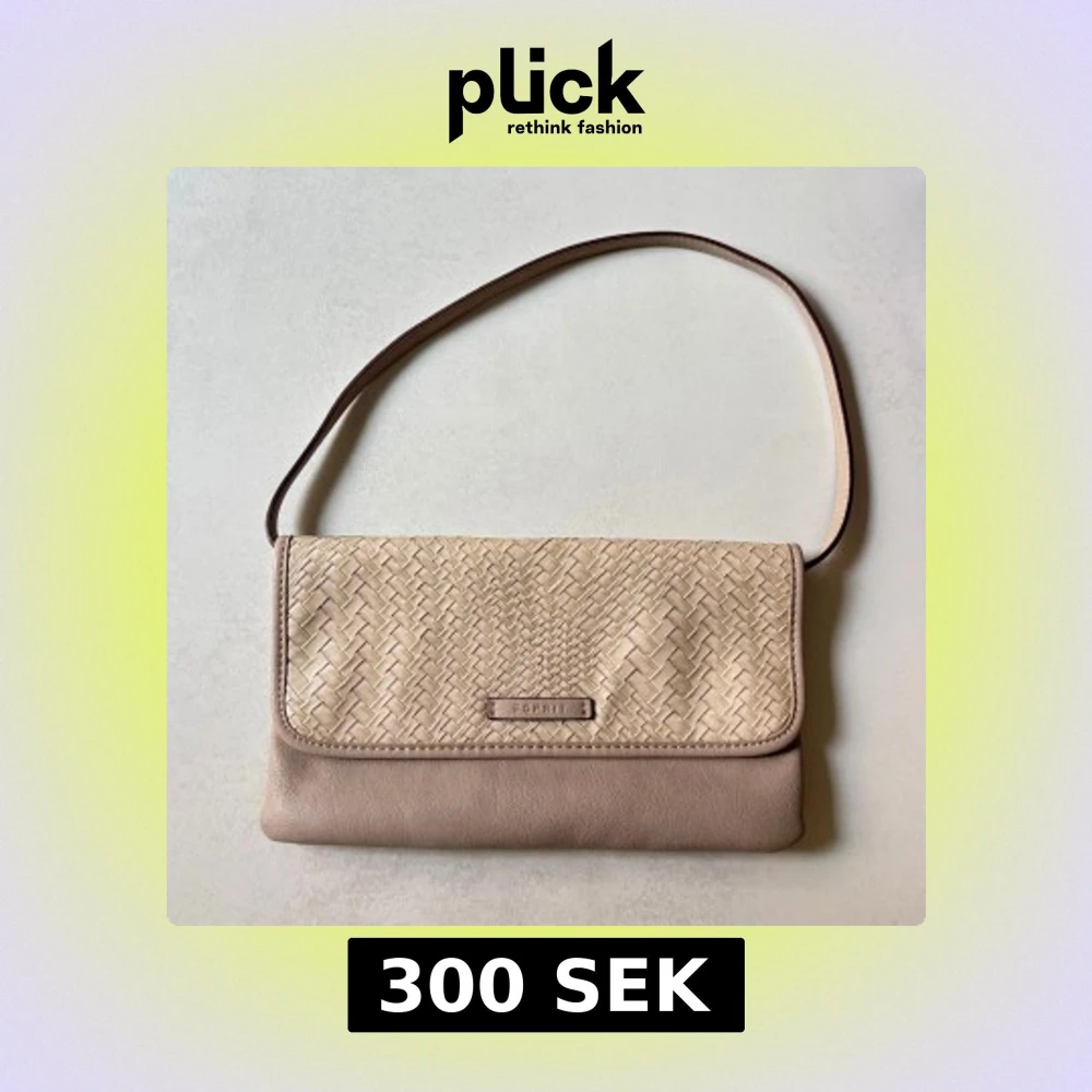 Snygg beige axelväska från Esprit med flätad framsida och mjukt skinnmaterial. Väskan har ett stilrent och klassiskt utseende med magnetknäppning och innerfack med dragkedja.