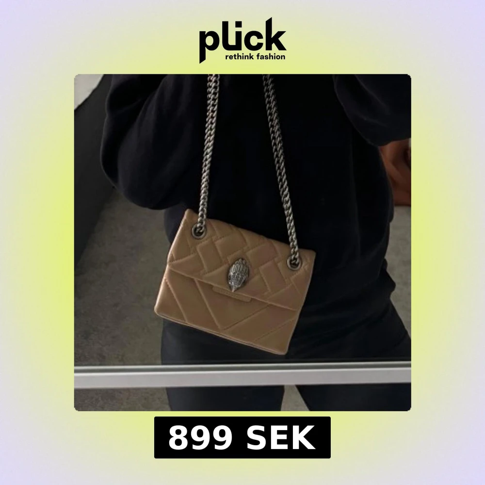 Snygg beige axelväska från Kurt Geiger med quiltad design och kedja. Det är den lilla modellen men rymmer det viktigaste du behöver ha med dig.❤️