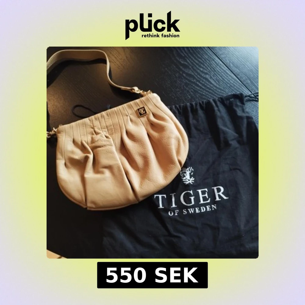 Säljer en beige axelväska i mjukt skinn från Tiger of Sweden. Väskan har veckad design framtill, justerbar axelrem och guldfärgade metalldetaljer. Invändigt finns dragkedjefack för småprylar. Perfekt för dig som gillar stilrena accessoarer.