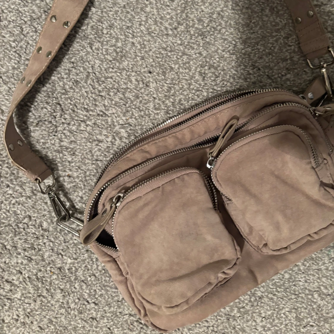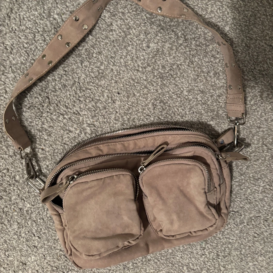 Beige axelväska med nitar