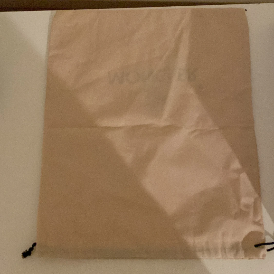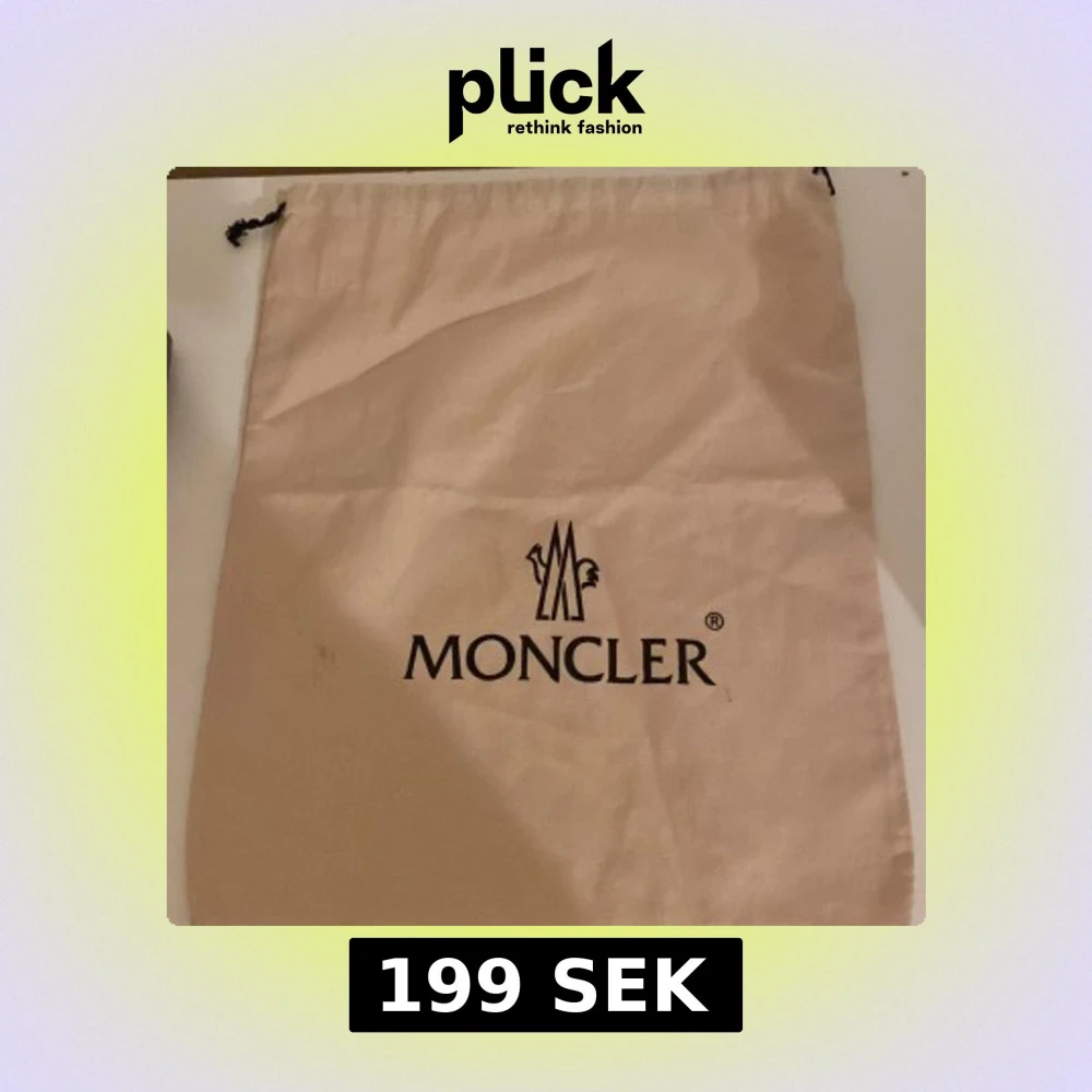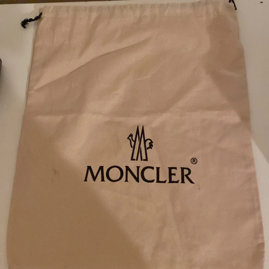 Säljer en beige dustbag från Moncler. Perfekt för att skydda dina väskor eller skor. Den har en dragsko upptill för enkel stängning. Priset är inte hugget i sten.