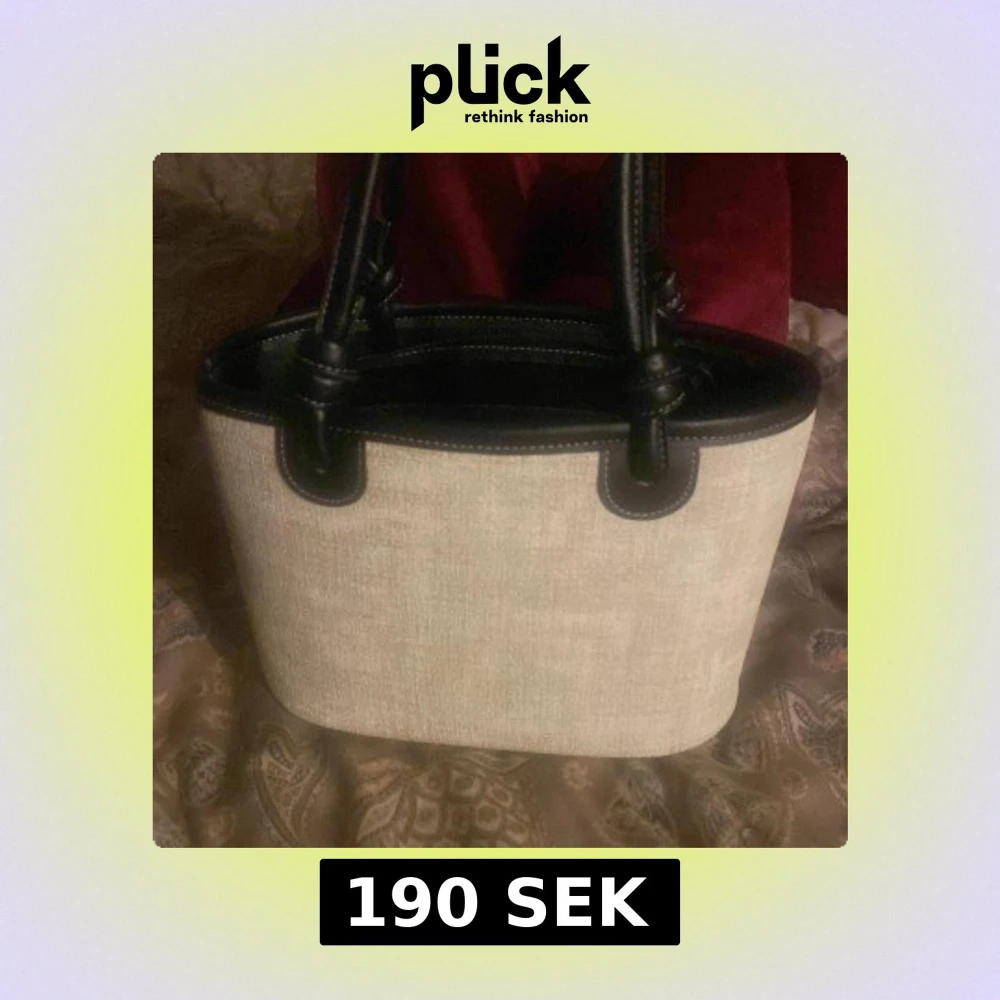 Snygg beige handväska med svarta handtag, långt band ingår! Köpte den utomlands, men den har tyvärr aldrig kommit till användning. Mycket rymlig