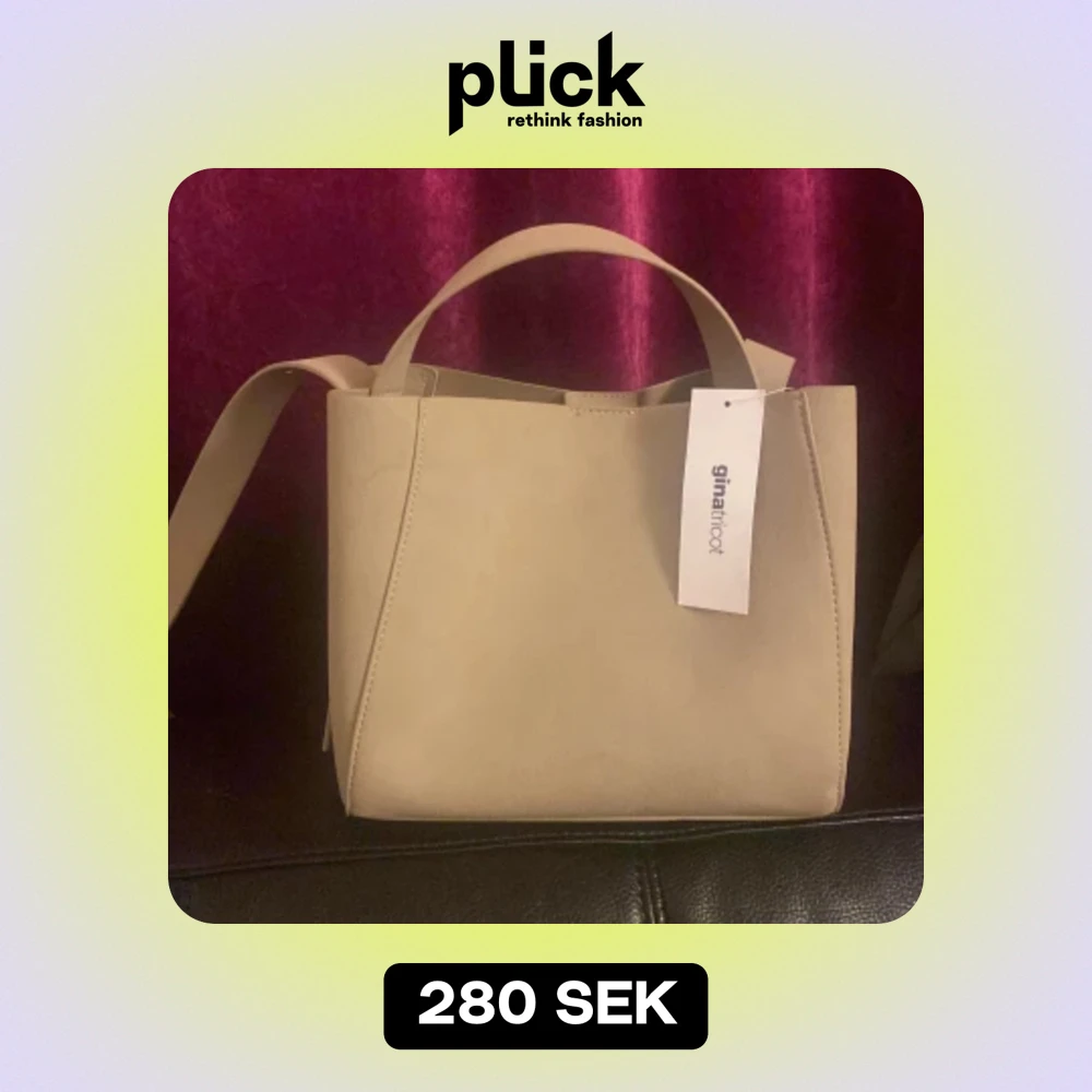 En stilren beige handväska från Gina Tricot. Väskan har en enkel design med två handtag och en axelrem för mångsidig användning. Perfekt för både vardag och fest. Oanvänd! prislappen är kvar 😊