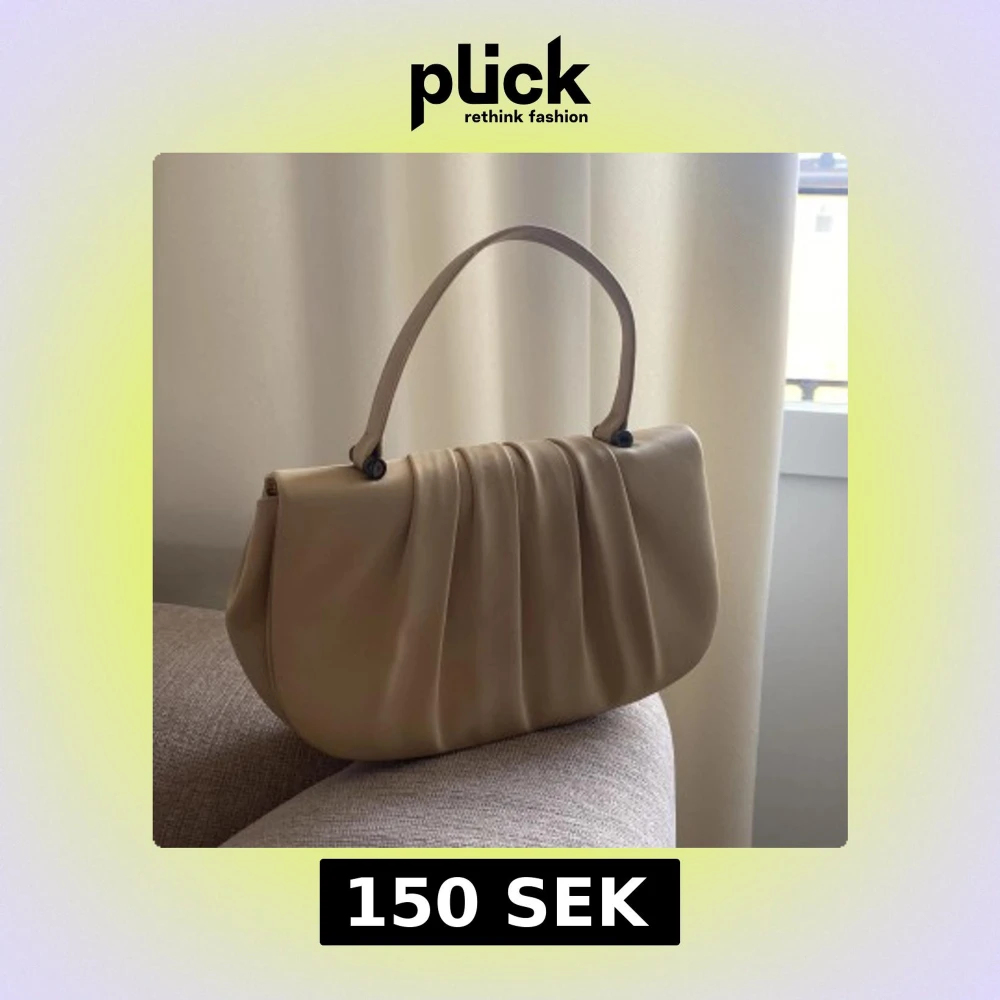 Snygg beige handväska från Perfetto med mjuk satinfinish och elegant veckad framsida. Väskan har ett stilrent handtag och magnetlås.