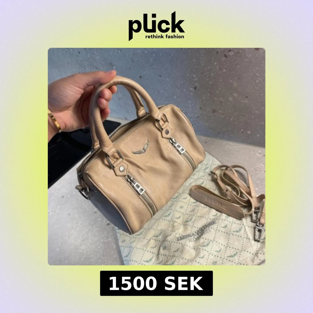 Snygg beige handväska från Zadig & Voltaire i mjukt skinn. Väskan har två korta handtag, avtagbar axelrem och coola silverfärgade dragkedjor framtill. Stilren design med logga och vingar i metall på framsidan. Perfekt storlek för det viktigaste.