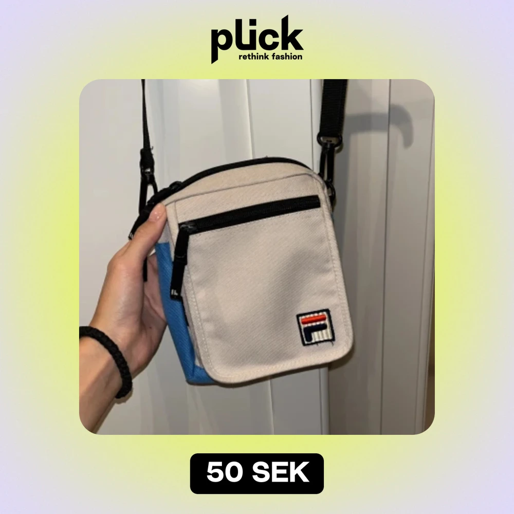 Säljer en snygg och praktisk axelväska från Fila i beige och blått. Väskan har en justerbar axelrem och en dragkedja framtill för säker förvaring. Perfekt för vardagsbruk eller när du är på språng!