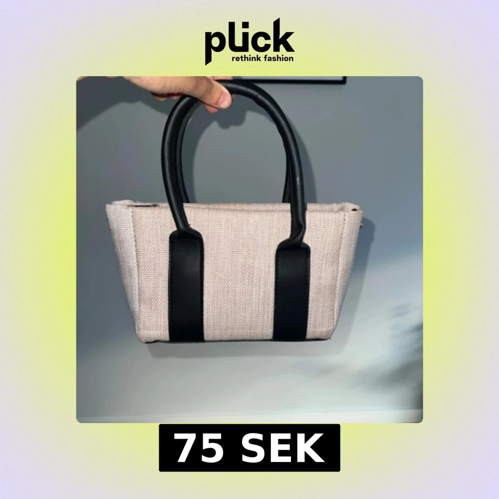 Beige och svart handväska i canvas