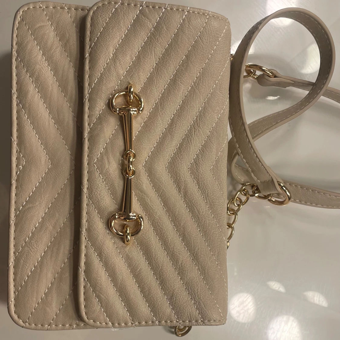 Säljer en superfin beige axelväska i quiltat mönster med gulddetaljer. Väskan är aldrig använd❣️❣️