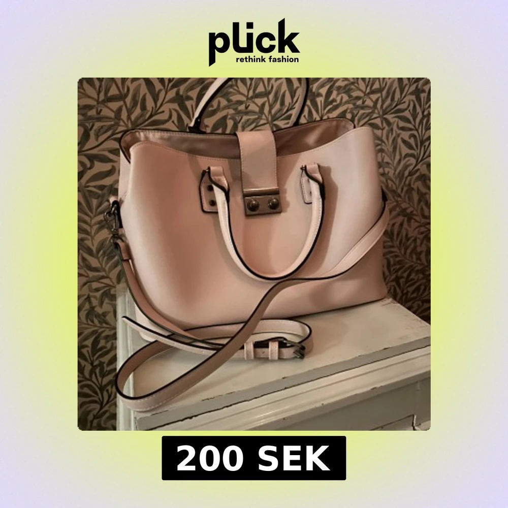 Snygg beige/rosa handvÀska med justerbar axelrem. VÀskan har en stilren design med metallknappar och gott om utrymme för dina saker. Perfekt för en chic och stilren look.