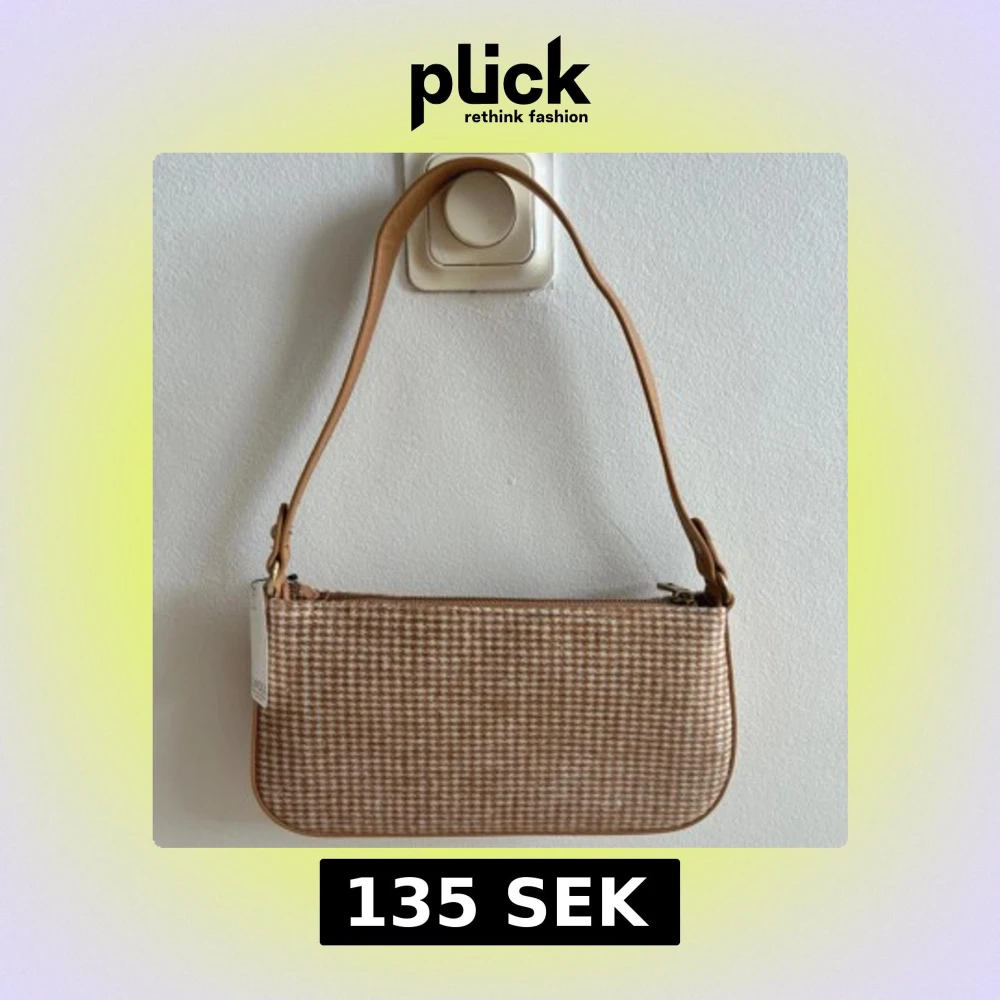 Snygg axelväska från Lindex i beige och vitt rutigt mönster. Väskan har en mjuk, rektangulär form med justerbart axelband i beige syntetmaterial och dragkedja upptill. Perfekt storlek för det viktigaste och med innerfack för småsaker. Helt ny med prislapp! Nypris: 255kr