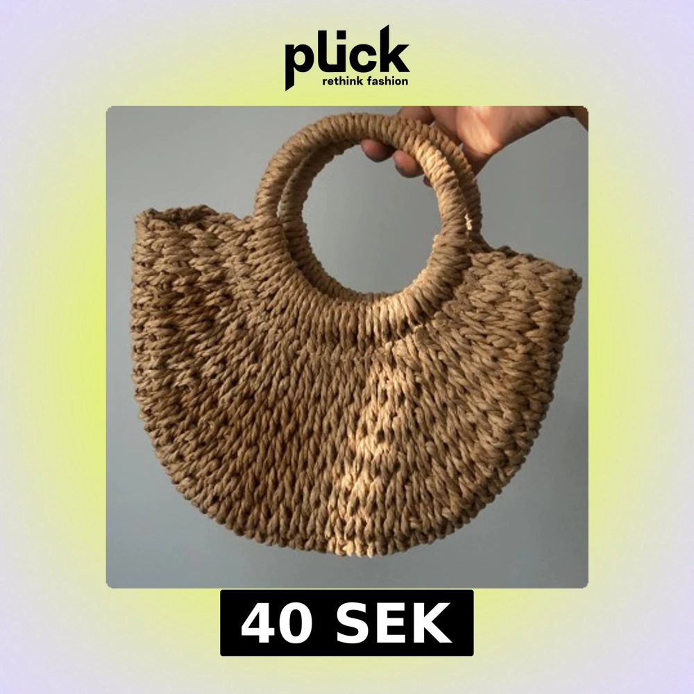 Säljer en snygg beige flätad handväska med rundade handtag. Perfekt för sommarens utflykter eller en dag på stranden. Väskan har en naturlig look och är både stilren och praktisk.