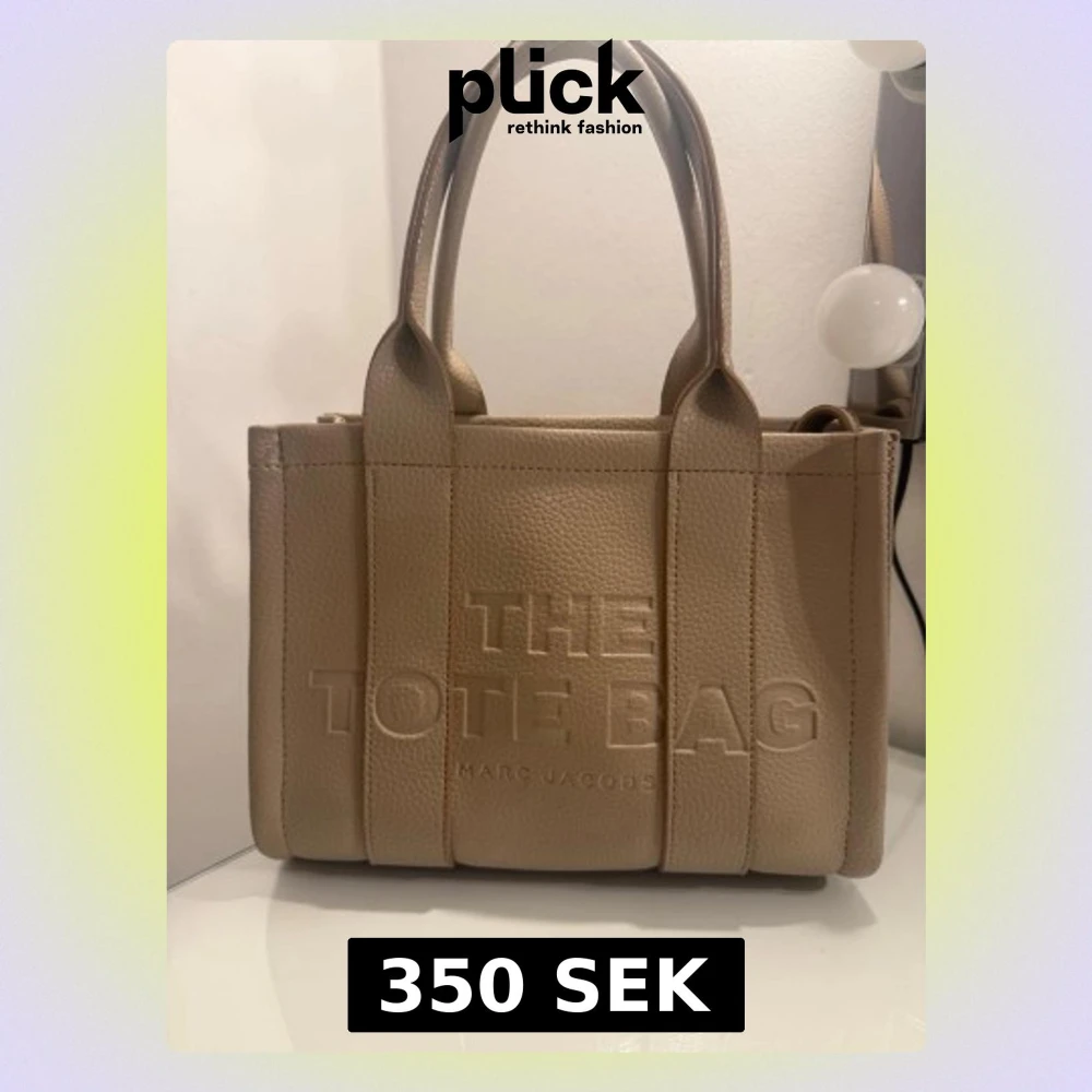 Säljer en beige Tote Bag i äkta skinn med präglad logga framtill. Väskan har två rejäla handtag, strukturerad form och dragkedja upptill. Insidan är rymlig med svart foder och en innerficka. ❤️