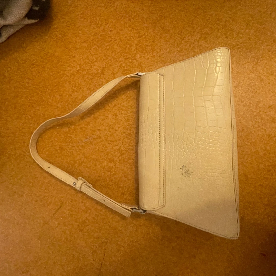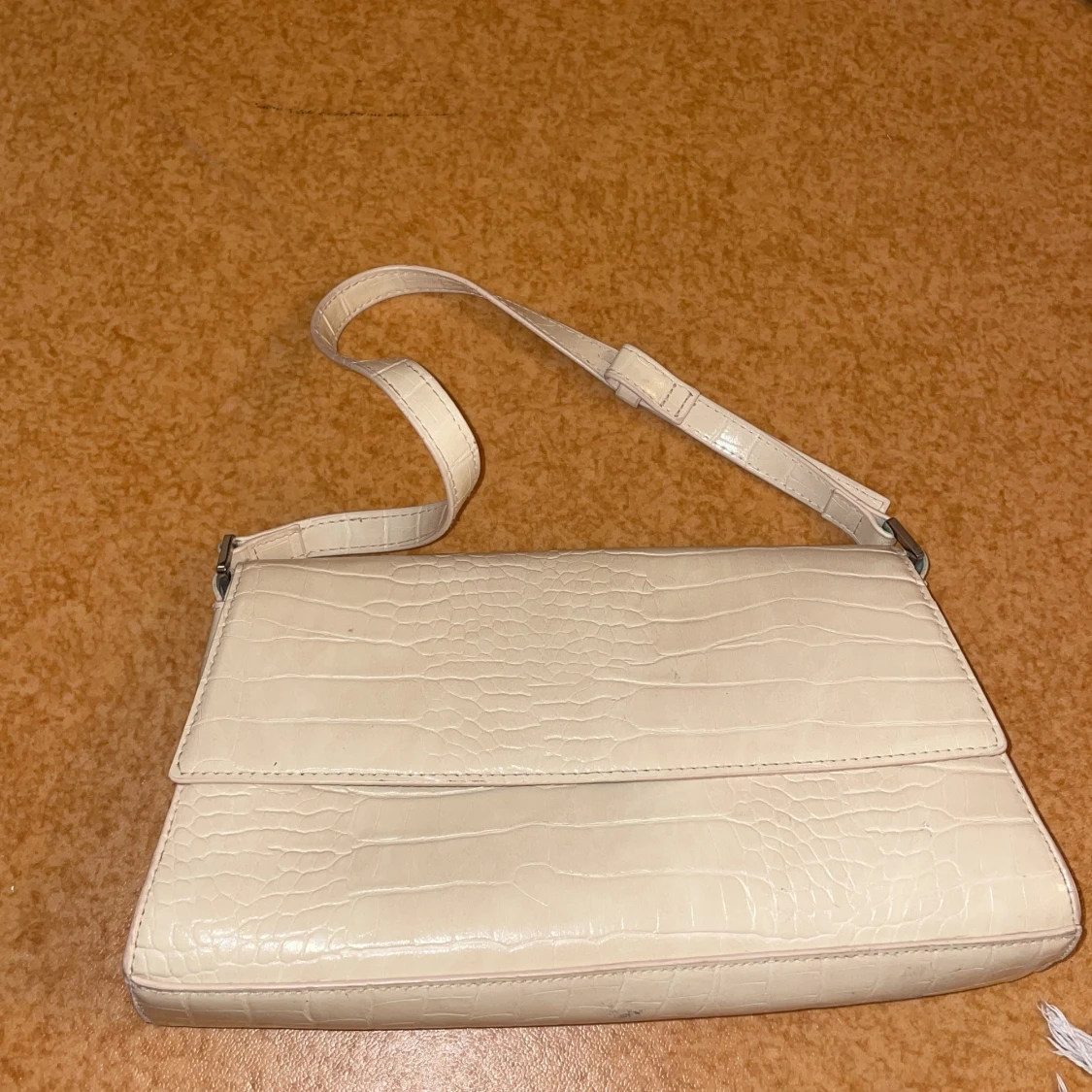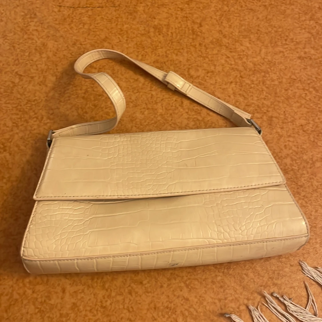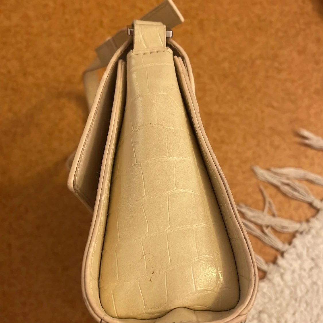 Snygg beige axelväska med justerbar rem och krokodilpräglat mönster. Väskan har en stilren design och är perfekt för att bära dina nödvändigheter med stil. Passar till många olika tillfällen. Lite fläckig men går bort kan tvättas💞💞