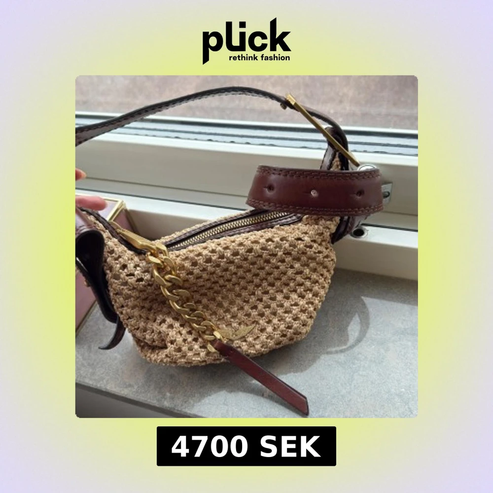 Snygg beige axelväska från Zadig & Voltaire, flätad och detaljer i mörkbrunt skinn. Väskan har en grov guldfärgad kedja, dragkedja upptill och coolt spänne på axelremmen. Så snyggiiiiis trendig populär Cecilia bag