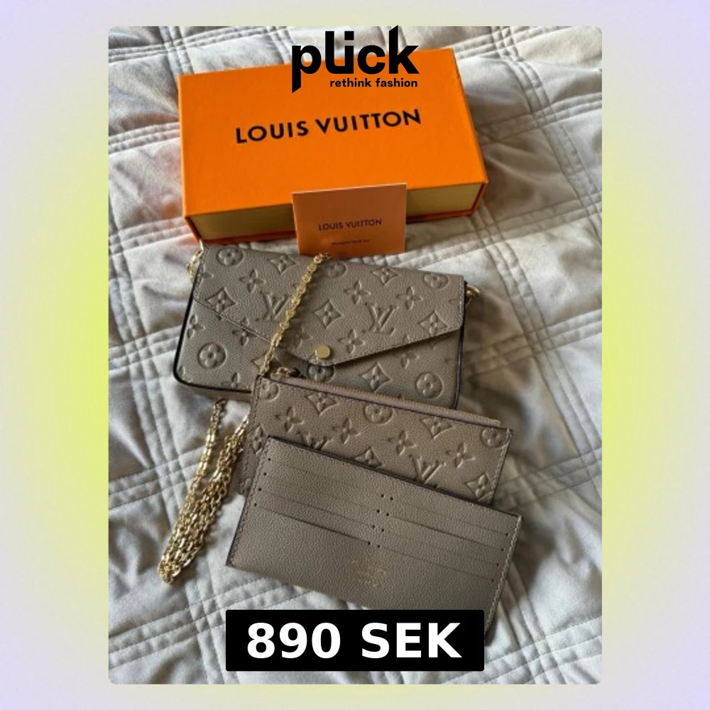 Box och dustbag, plånbok och korthållare ingår.