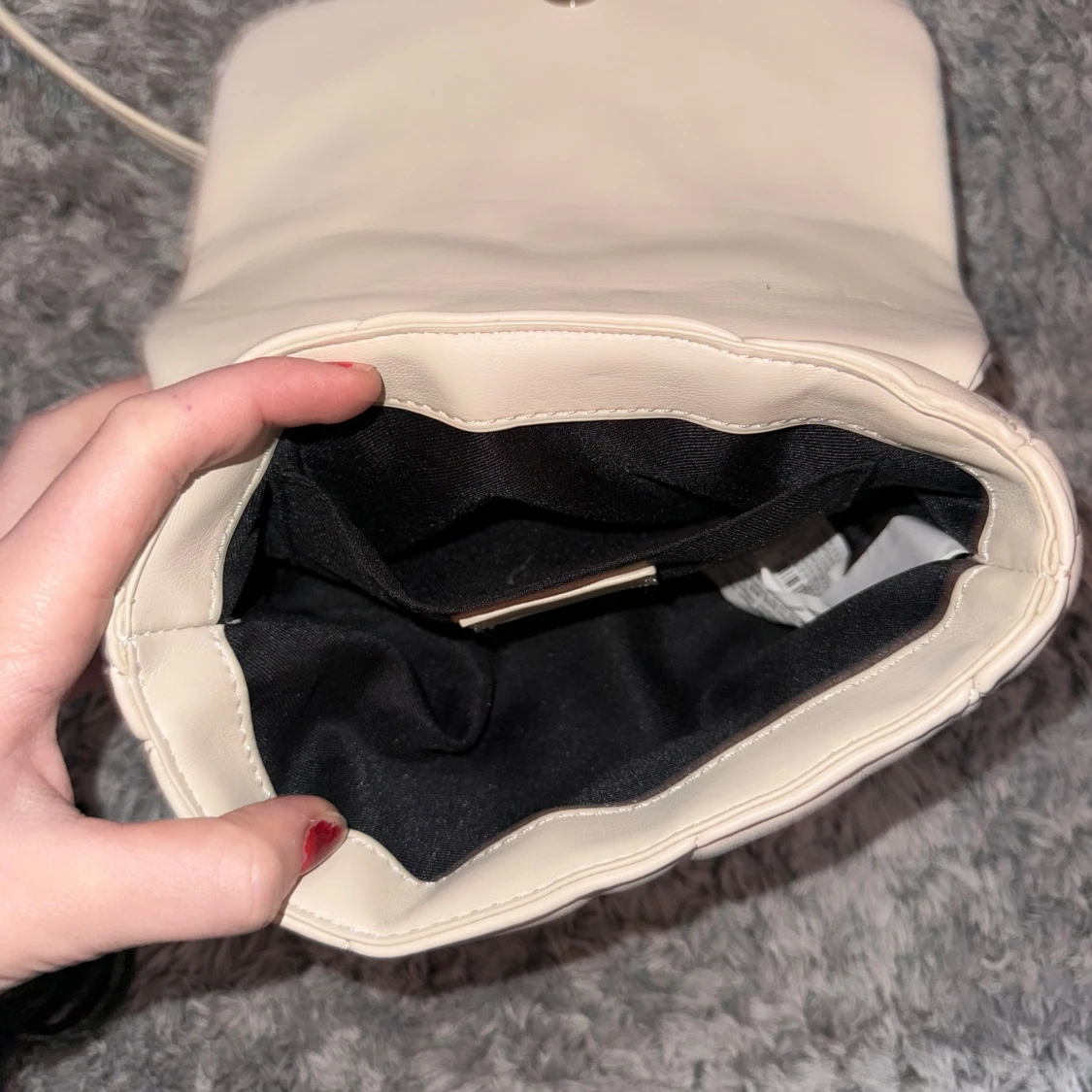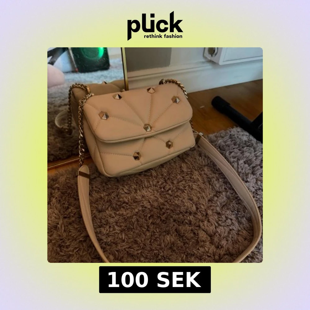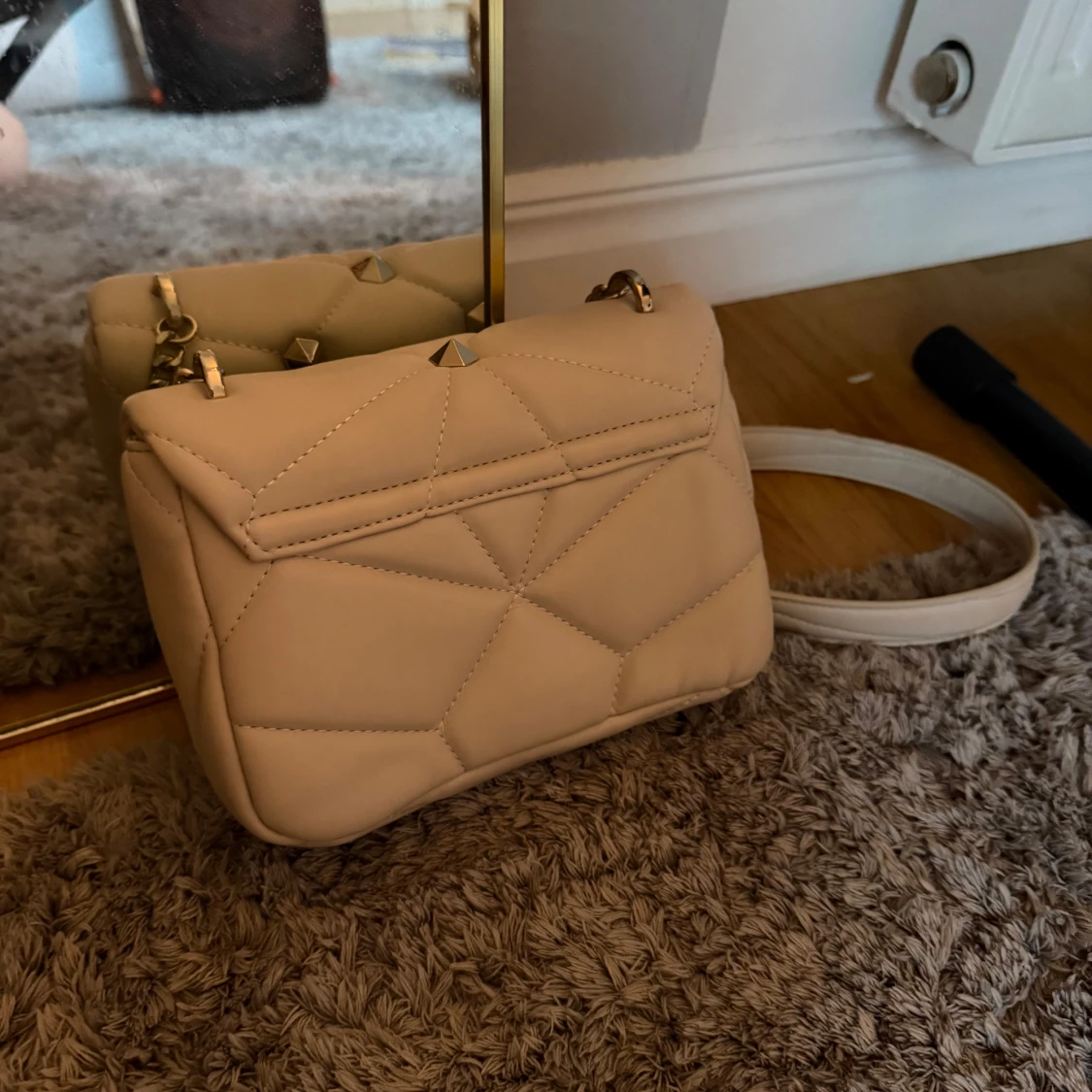 Snygg beige axelväska med guldfärgade nitar och kedjedetaljer från Zara som aldrig använts. Väskan ett praktiskt innerfack. Gullig väska som passar till mycket💛🤍