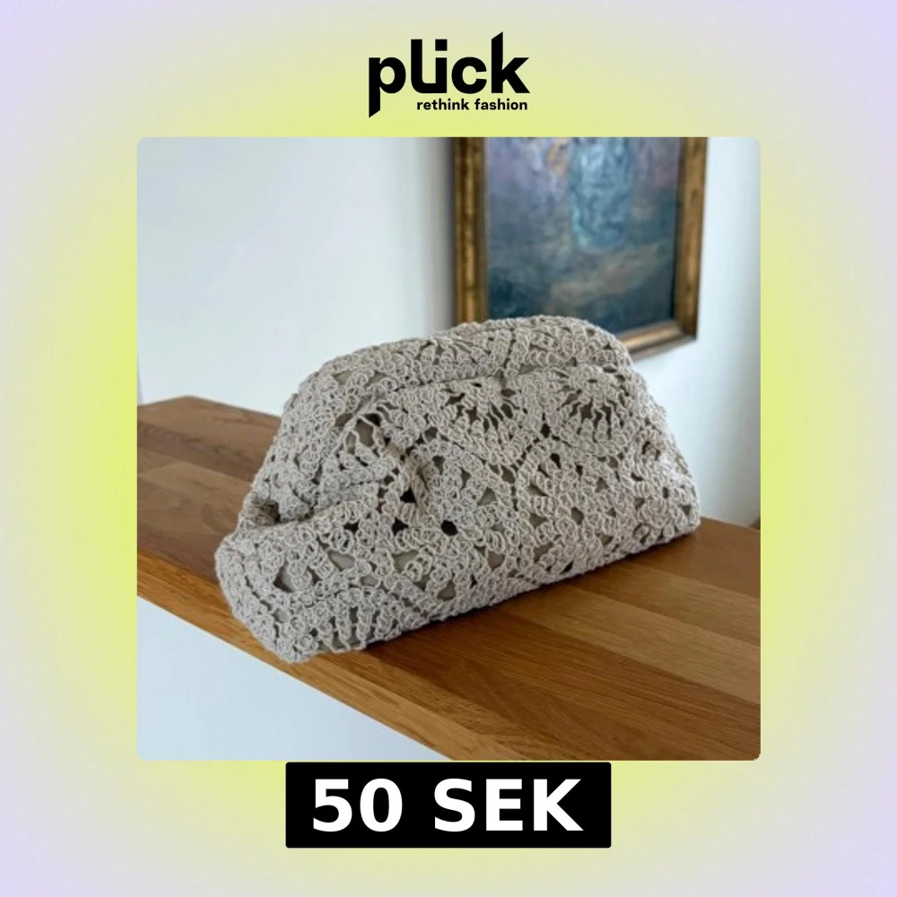 Superfin beige kuvertväska med virkat mönster och mjuk form från Shein. Aldrig använd