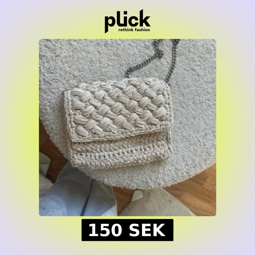Säljer en snygg beige stickad axelväska med en kedja till💓