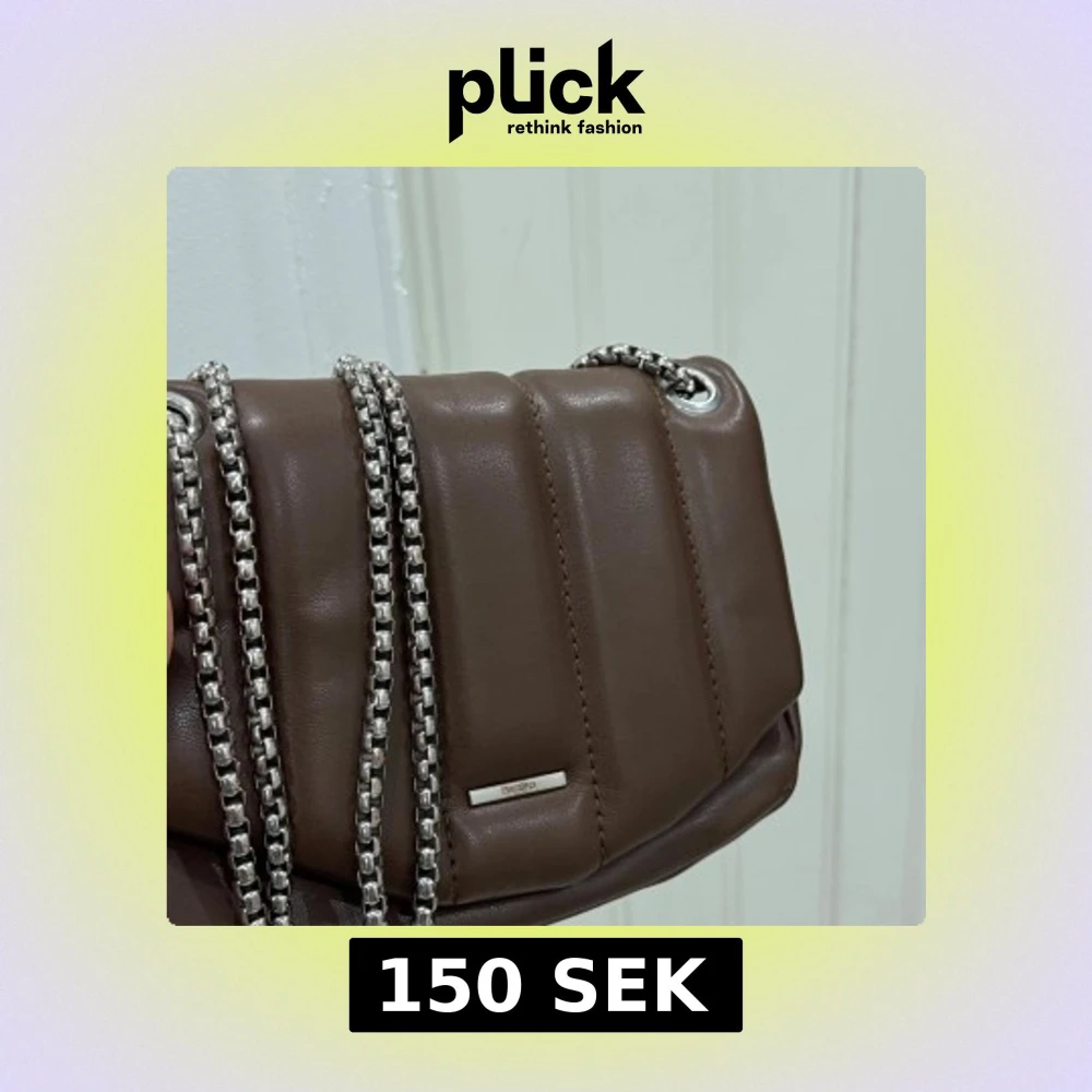 Snygg brun axelväska från Bershka med quiltad design och silverfärgad kedja som axelrem. Väskan är tillverkad i skinnimitation och har ett stilrent, rektangulärt format.