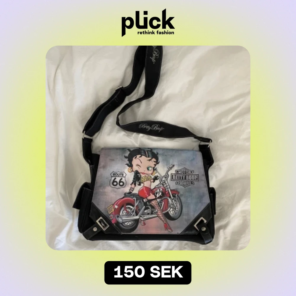 Äkta vintage betty boop väska i jättefint skick, stor nog för att ha dator i.