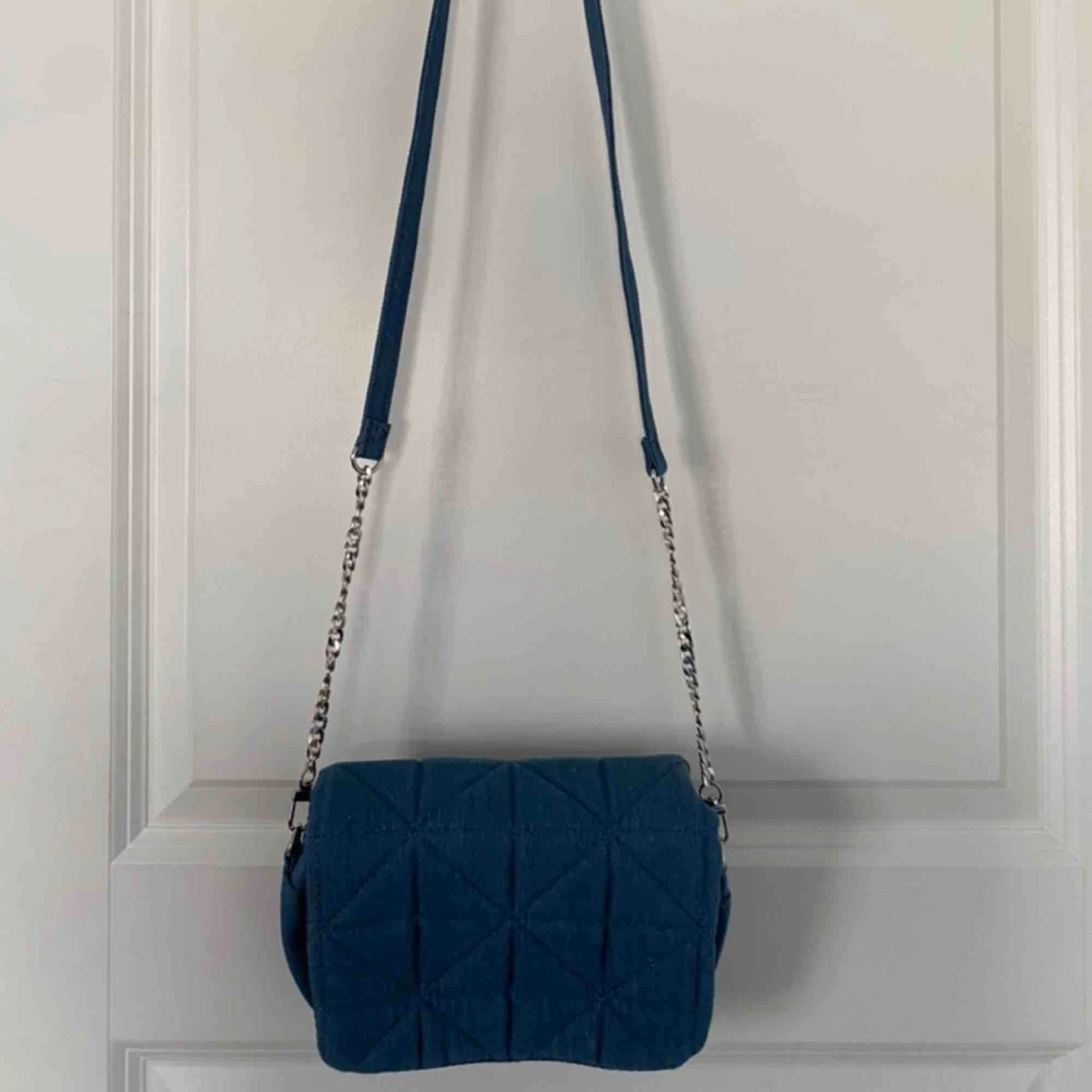 Jättefin denimväska som tyvärr inte kommer till användning:/ aldrig använd och går att göra längre och kortare! Rymlig väska som även har ett litet fack! Köpare står för frakt!