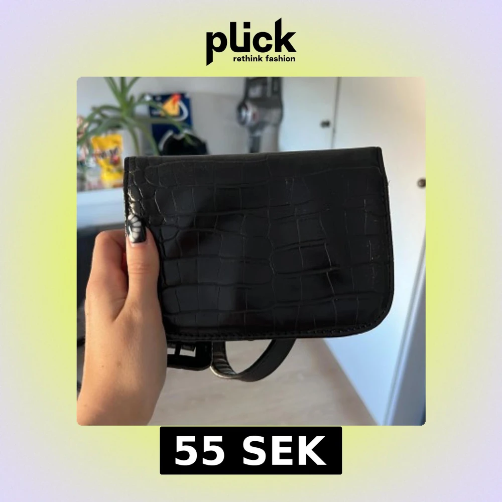 Snygg svart väska från BIKBOK i croco-imitation med justerbart band och fyrkantigt spänne. Väskan har magnetlås och ett huvudfack med dragkedja inuti. Perfekt storlek för det viktigaste och ger en trendig touch till din outfit.