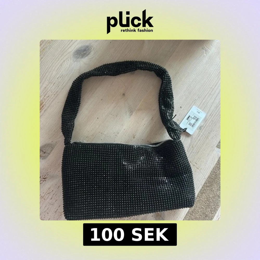 Säljer en svart axelväska från BikBok med glittriga pärldetaljer över hela väskan. Den har en bred axelrem och stängs med dragkedja upptill. Perfekt storlek för det viktigaste och ger en snygg touch till din outfit. Inne ficka finns! Helt ny!!!