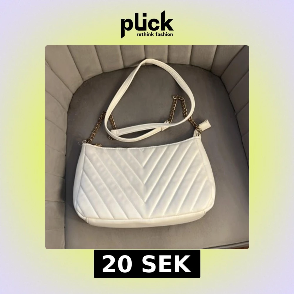 Snygg vit axelväska från Glitter med quiltad design och guldfärgad kedjedetalj på axelremmen. Väskan har dragkedja upptill och ett rymligt fack med innerficka. Perfekt för dig som vill ha en stilren och trendig accessoar. Den har lite rost på kedjan samt lite missfärgad.