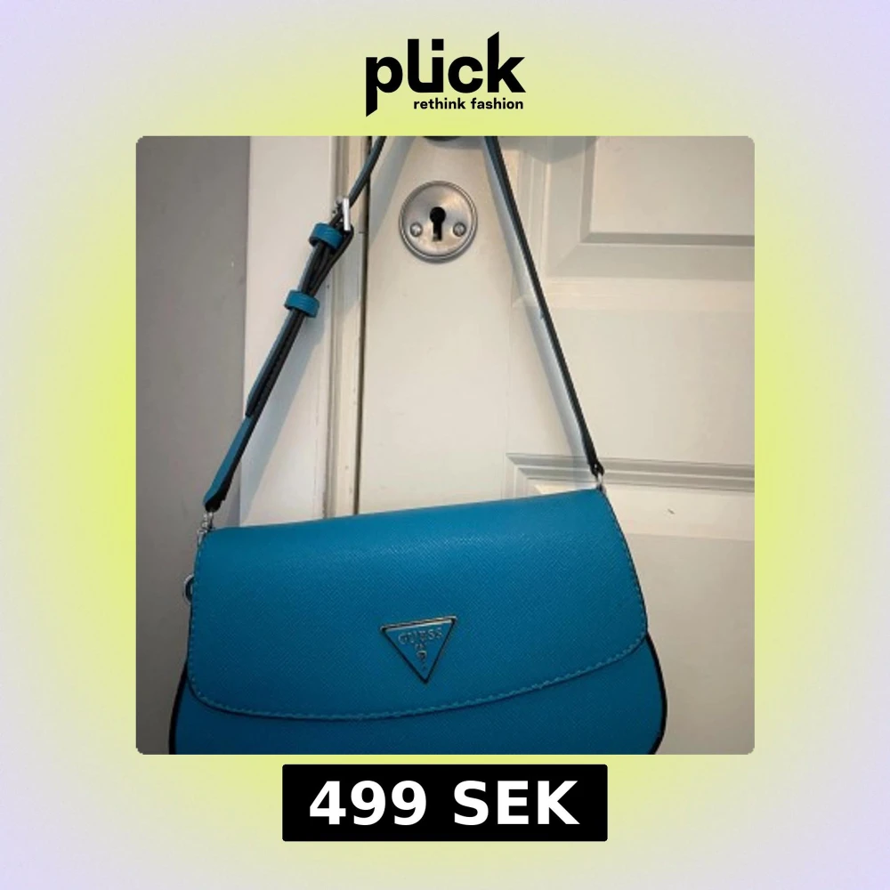 Snygg blå axelväska från Guess med justerbart axelband och klassisk trekantslogga i silver framtill. Väskan är tillverkad i strukturerad syntet och har en stilren, modern design som passar perfekt till din outfit.