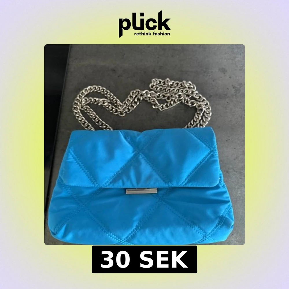 Snygg quiltad axelväska i klarblått från Mango med silverfärgad kedjerem. Väskan har ett mjukt tygmaterial, lockstängning med metallspänne och flera fack inuti. Perfekt för dig som vill ha en färgklick till din outfit.