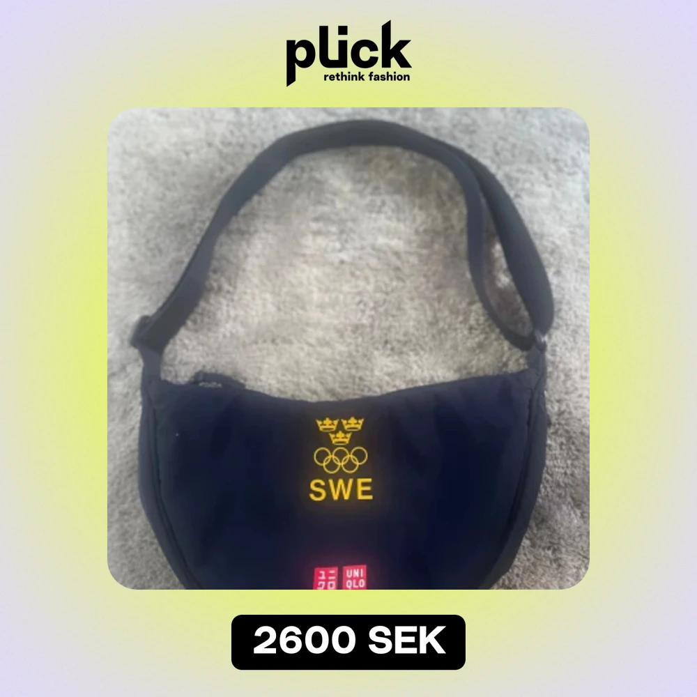 Säljer en blå axelväska från sweden olympisk med ett gult SWE-tryck och olympiska ringar. Väskan har en justerbar axelrem och en dragkedja upptill. Perfekt för vardagsbruk eller som en sportig accessoar. OS VÄSKA