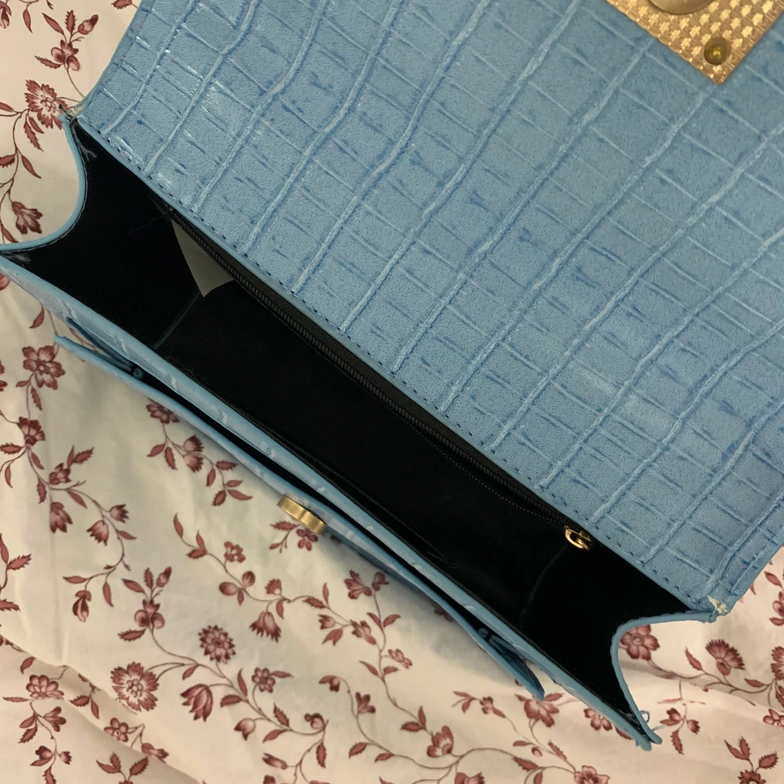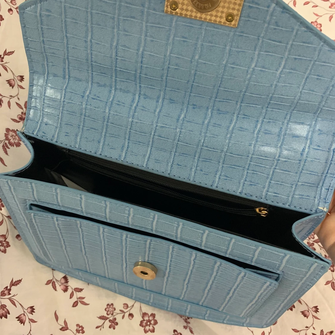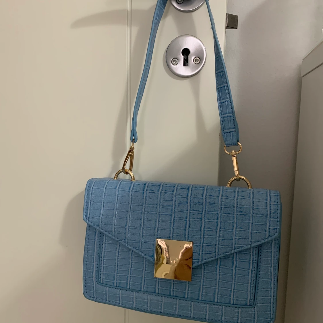 Sjukt snygg babyblå mindre axelväska med guldetaljer med ett fack på utsidan. Pris går att diskuteras