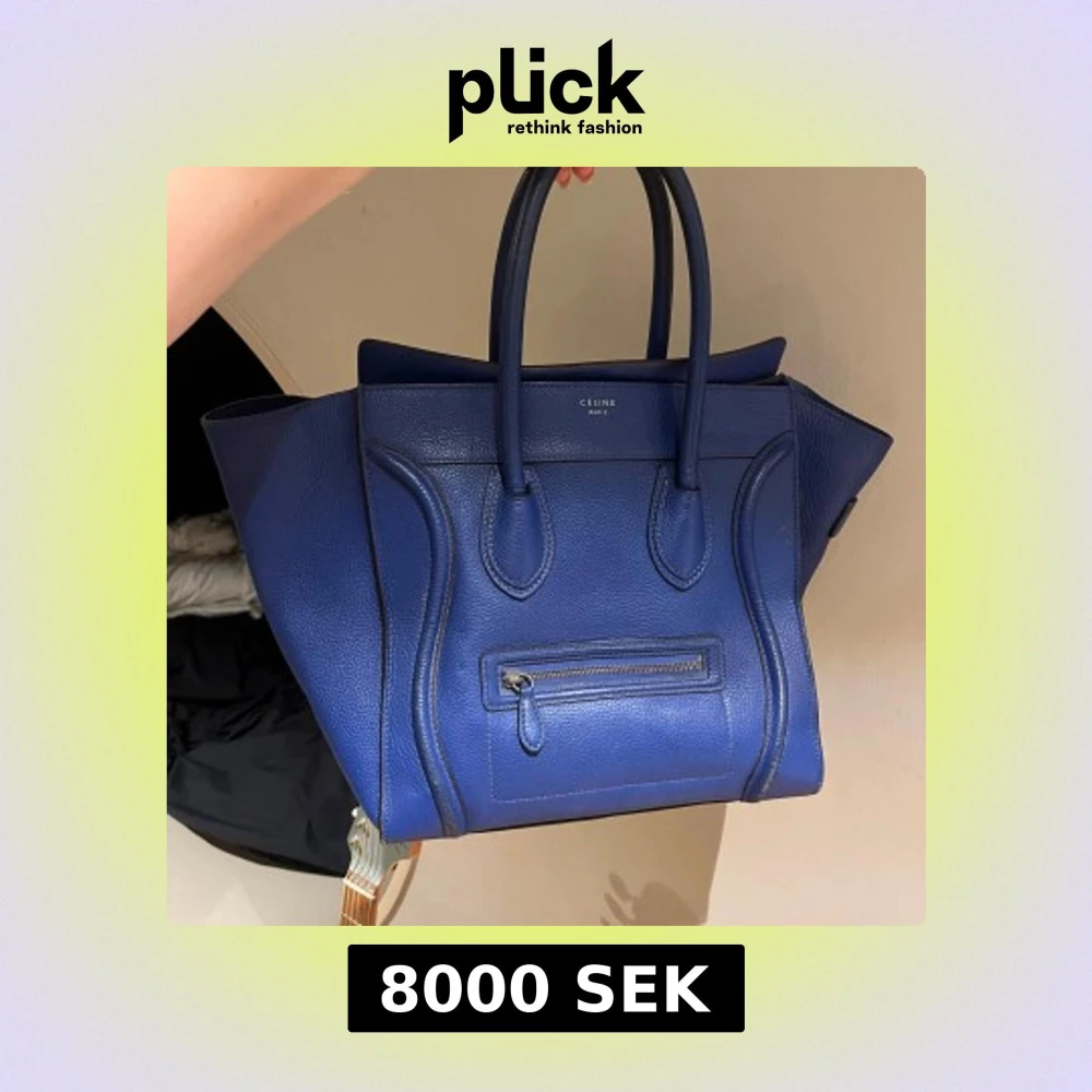 Säljer en ikonisk blå Luggage Tote från Céline i äkta skinn. Väskan har två topphandtag, snygga svängda detaljer och en praktisk dragkedjeficka framtill. Perfekt för dig som vill ha en statementväska med lyxig känsla och rymlig insida.