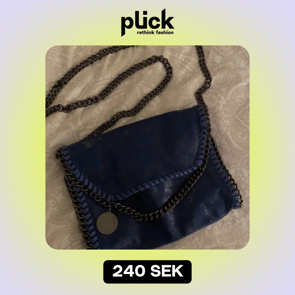 Jättesnygg marinblå glittrig axelremsväska köpt på plick! Liknar Stella McCartney väska. Aldrig använt🫶🏼💓