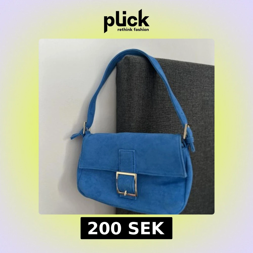 En jätte söt blå handväska i mocka med två fickor och perfekt storlek att ha på axeln 🥂 använd 1 gång så sprillans ny!! Nypris: 399 kr