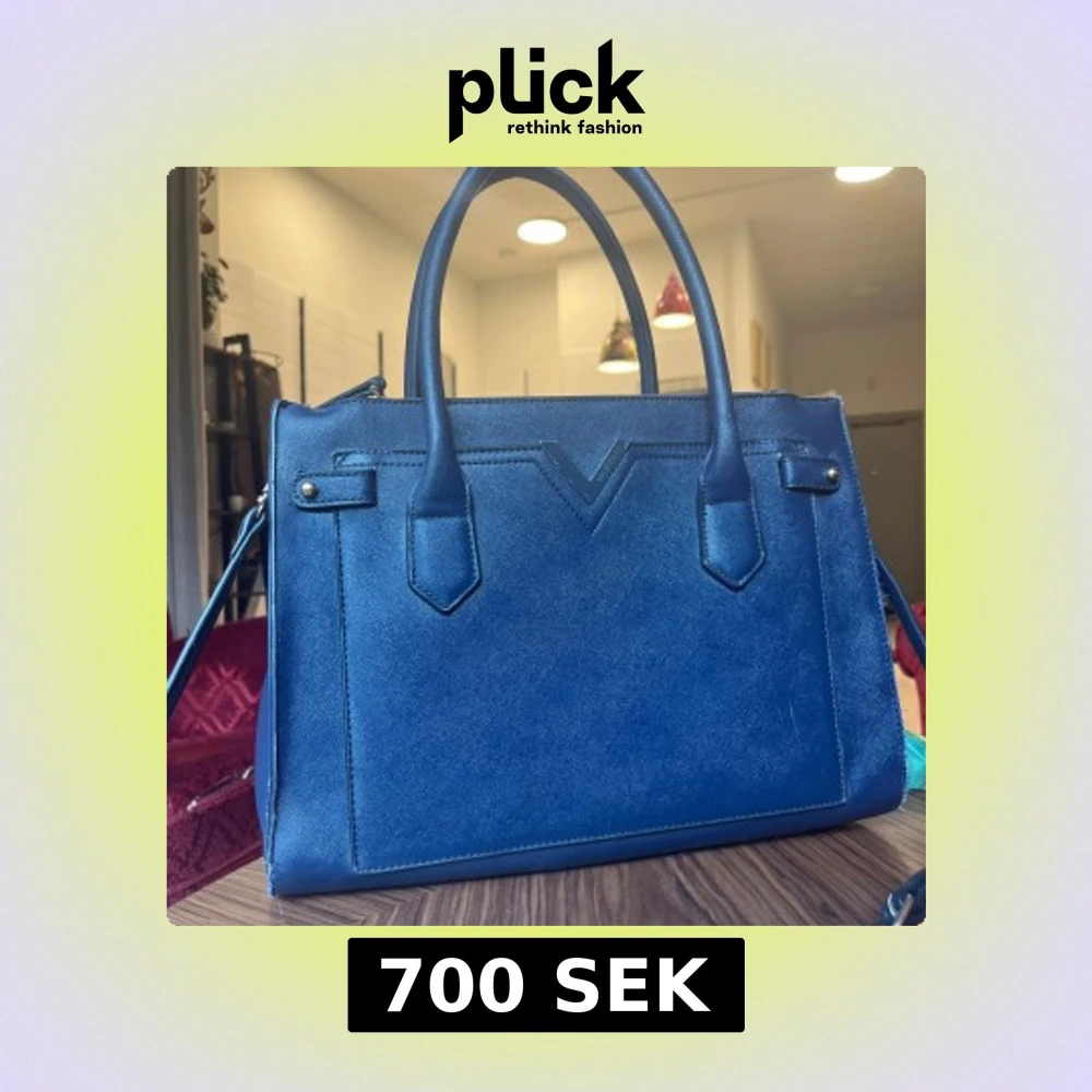 Snygg blå handväska från Valentino i slätt skinn med stilren design och V-detalj framtill. Väskan har både handtag och axelrem, samt dragkedja upptill och flera fack inuti. Perfekt för dig som vill ha en klassisk och trendig accessoar. Kan ej garantera att den är äkta men tror det, därav de billiga priset