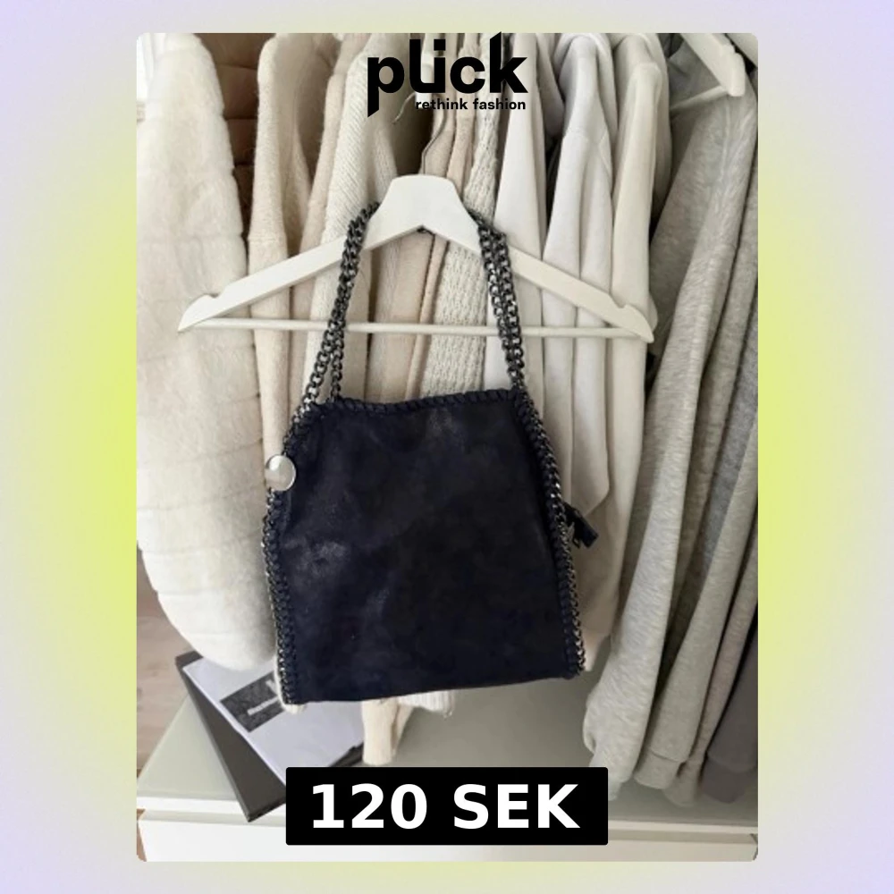 Säljer en mörkblå axelväska i syntetmaterial med snygga silverfärgade kedjor som axelband och runt kanterna. Väskan har dragkedja upptill och en extra ficka med dragkedja på baksidan. Perfekt storlek för det viktigaste och ger en cool vibe till din outfit.