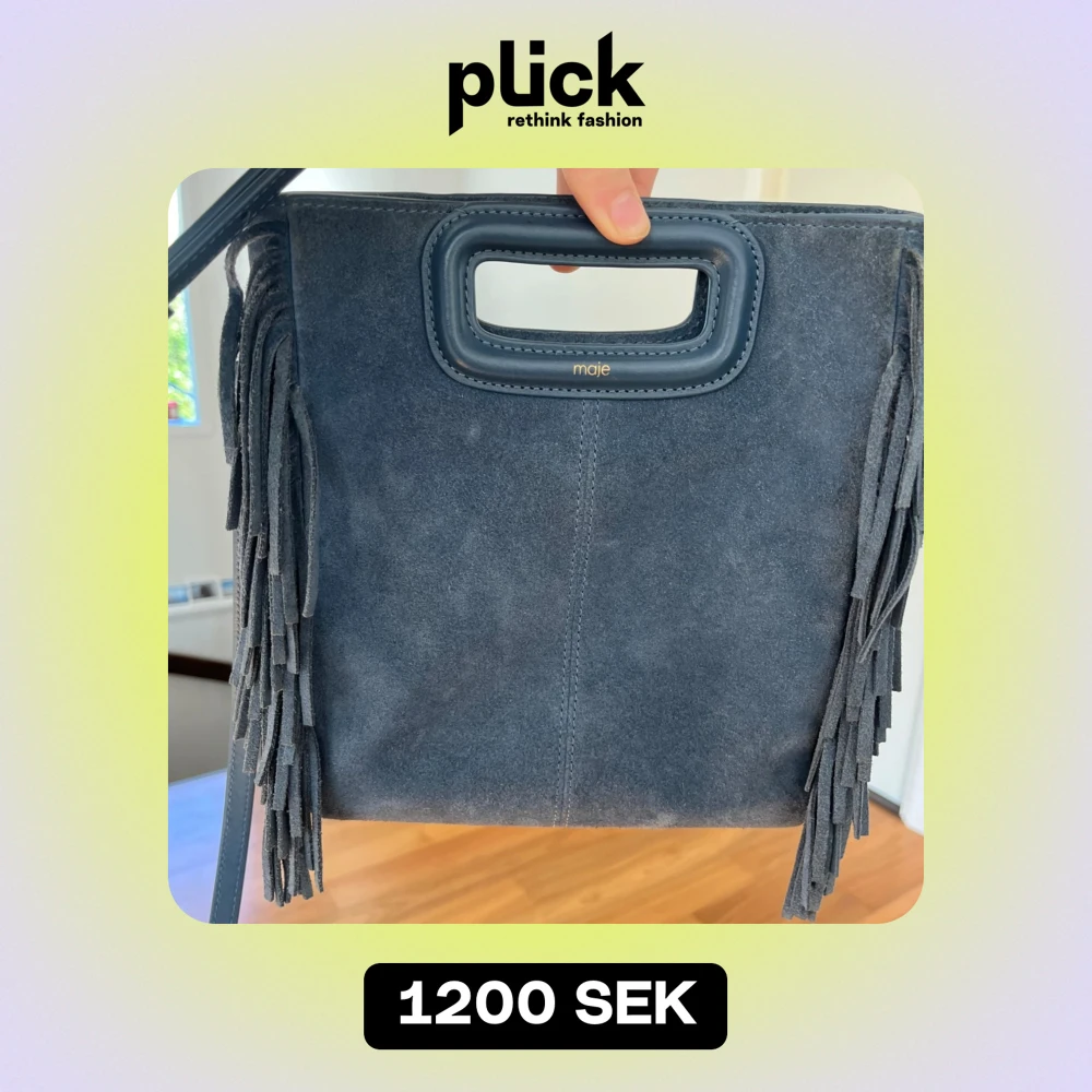 Superfin blå mocka väska från Maje. Köpt i Paris för orginalpris ca 2200kr. Små defekter av användning men inga skador. Orginalpåse med kvitto ingår💕