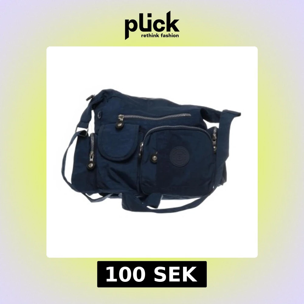 Marinblå axelväska med flera fickor med dragkedja. Passar dam, herr och unisex