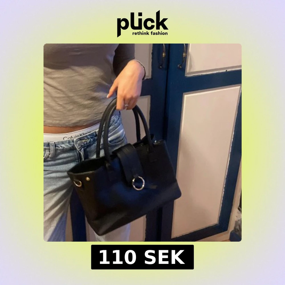 Snygg svart handväska med stilren design. Väskan har en ringdetalj framtill och två bekväma handtag. Perfekt för att bära dina dagliga nödvändigheter❤️❤️💕