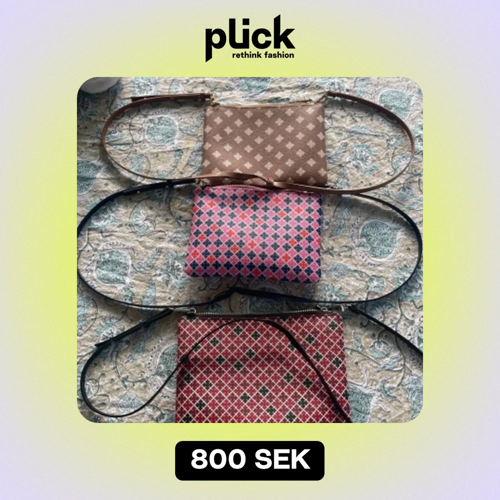 Den vinröda är helt fin! De andra två har slitna band. Säljer därför alla tre för ett pris så man kan byta band från den vinröda till de andra. Eller ha dem som Pouch