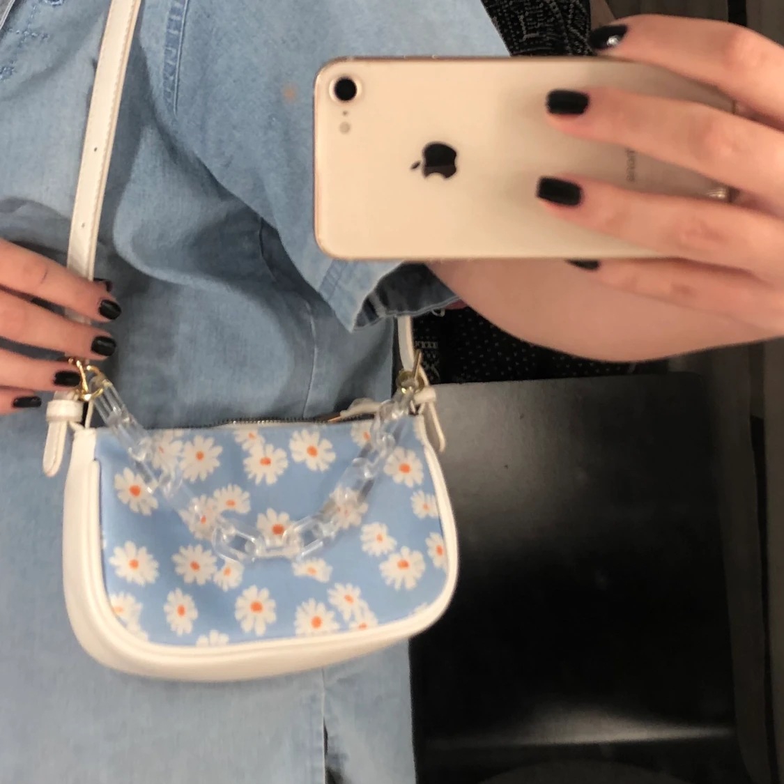 Jättefin blommig väska från Shein som jag inte haft särskilt länge. Ganska bra kvalitet med långt axelband och kedja av plast. Hör av er om ni vill ha måtten på väskan! Nypris: 79 Kostnad: 20+frakt