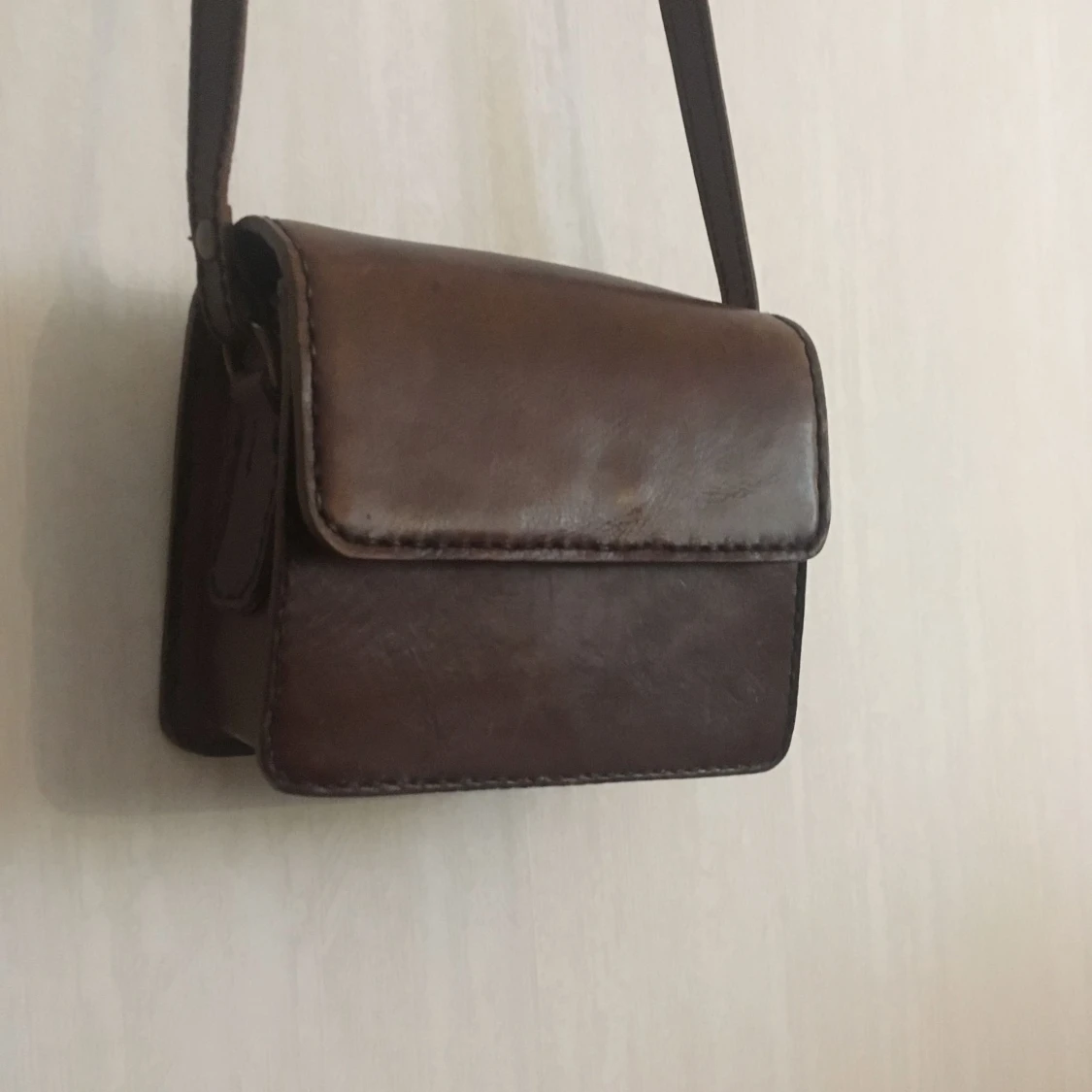 Bosboom vintage axelremsväska i brunt läder Mått: b14,5 x h11,5 x d6,5 Har fått en fin vintage-slitning i lädret och är fortfarande i mycket fint skick! Ett fack inuti och ett litet ytterfack under locket finns. Stängs med magnet-lås. Kan hämtas i Göteborg eller skickas. Köparen står för frakten!